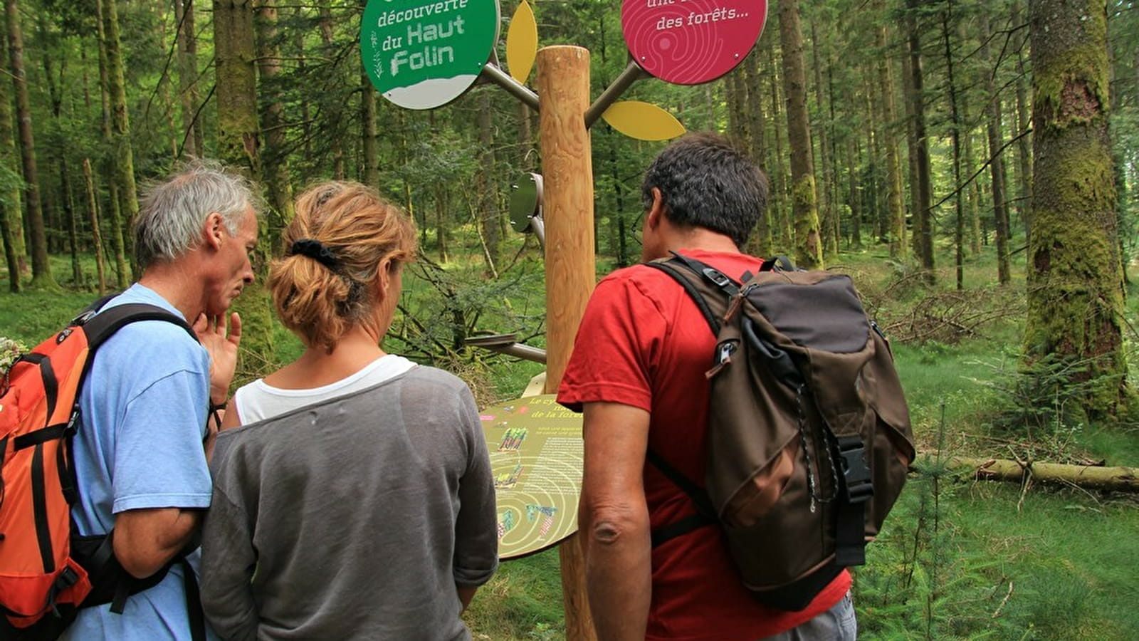 Bienvenue dans le massif du Haut-Folin, sommet de la Bourgogne et du Morvan, que vous soyez à pied, en VTT, à cheval,... ou en ski, partez, le long des chemins, à la découverte de la nature et des secrets de la forêt ... Des arbres-totem et des pierres de granit, fils conducteurs de vos découvertes, vous donneront, le long de vos circuits, quelques clés pour connaître cette montagne.