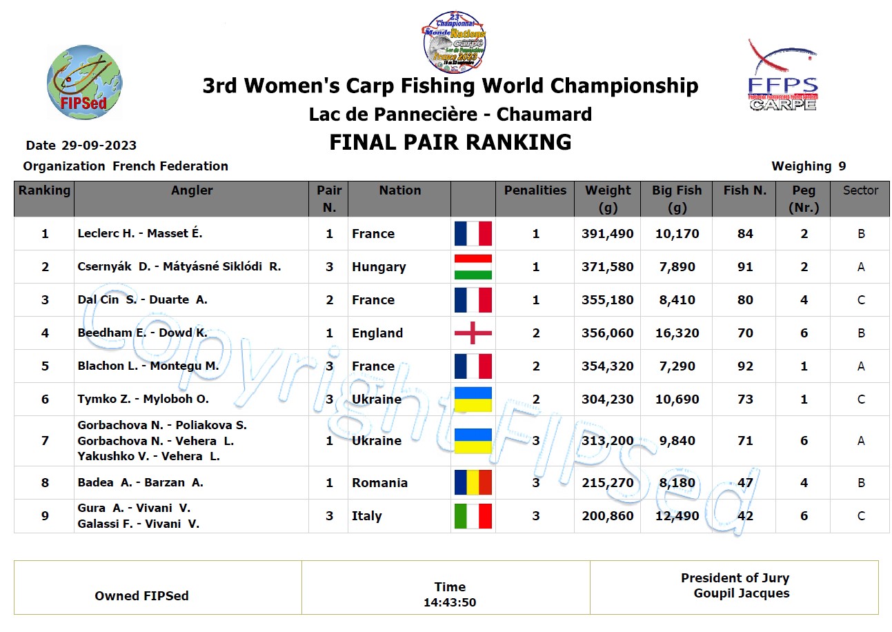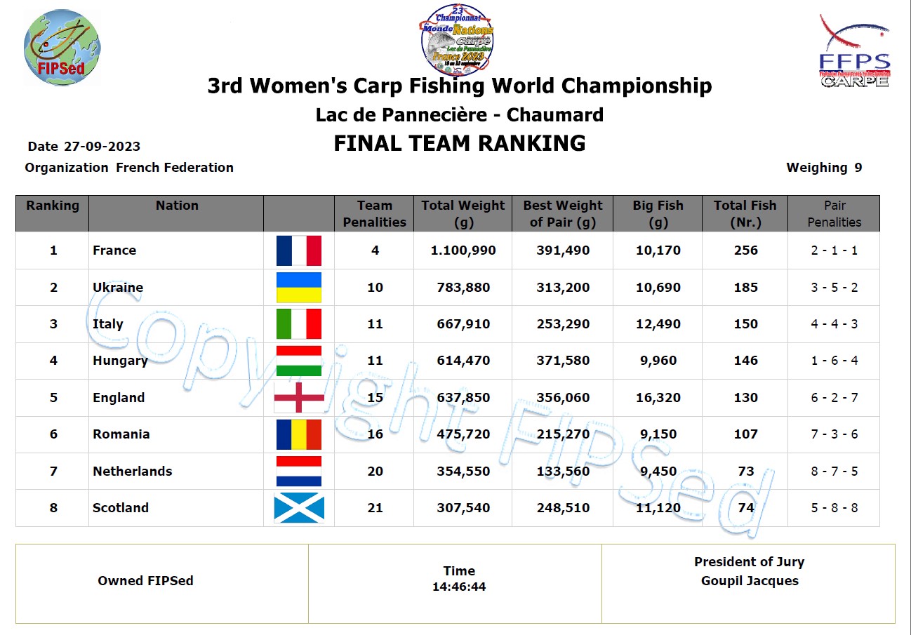 3ème CHAMPIONNATS DU MONDE CARPE FEMININ