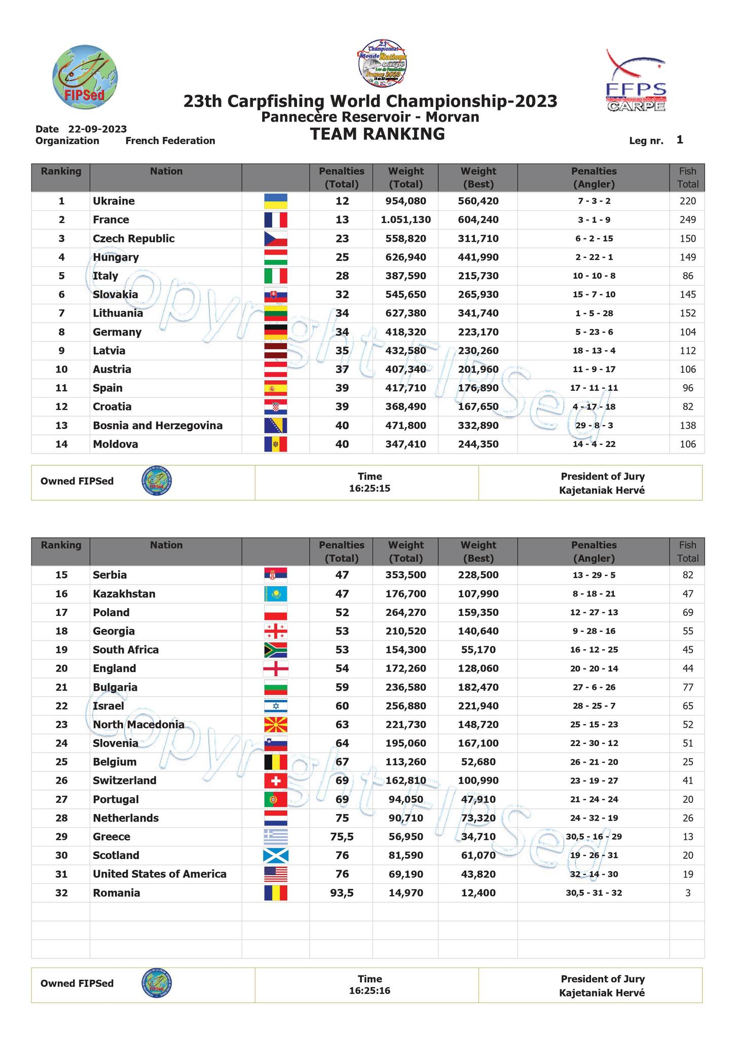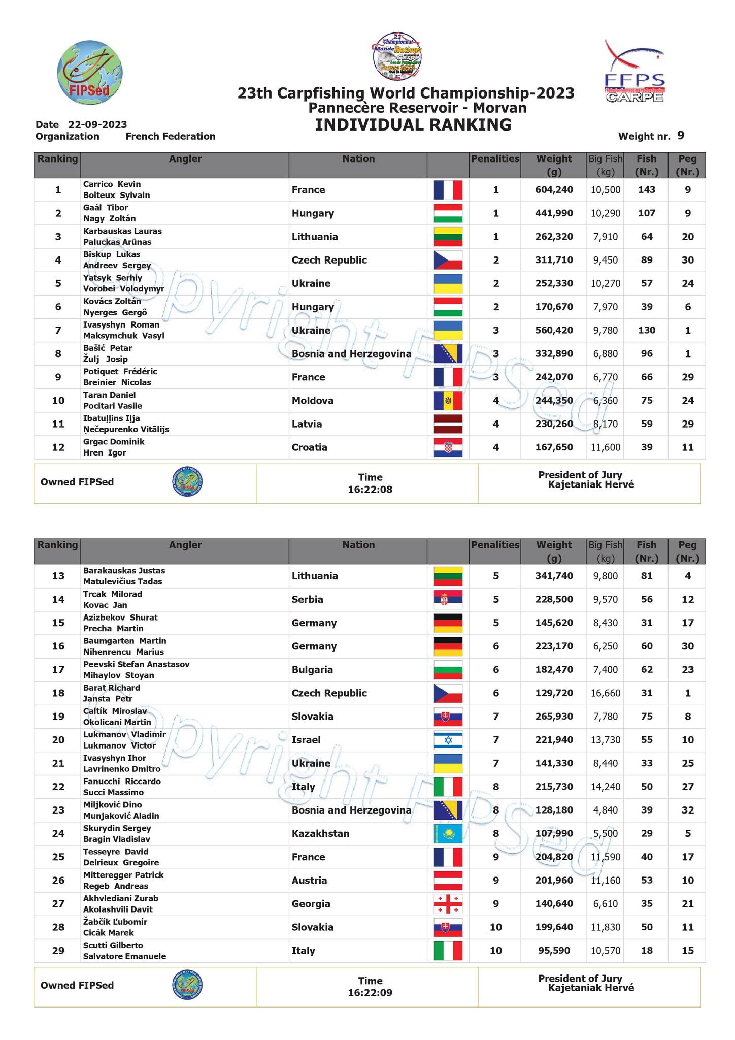23ème CHAMPIONNATS DU MONDE CARPE SENIORS