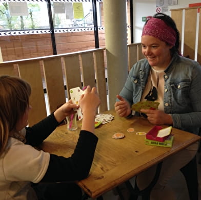 The café has a library area and a bookshop with regional products, local crafts, books and games for young and old.
