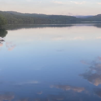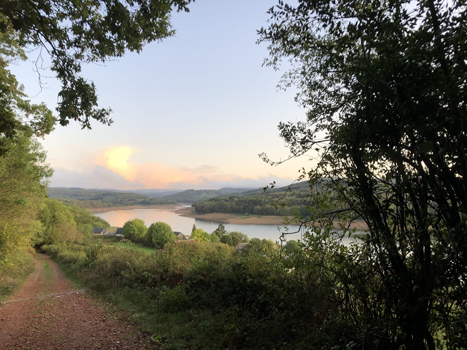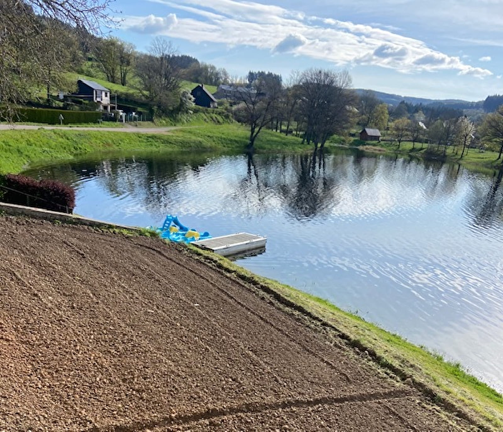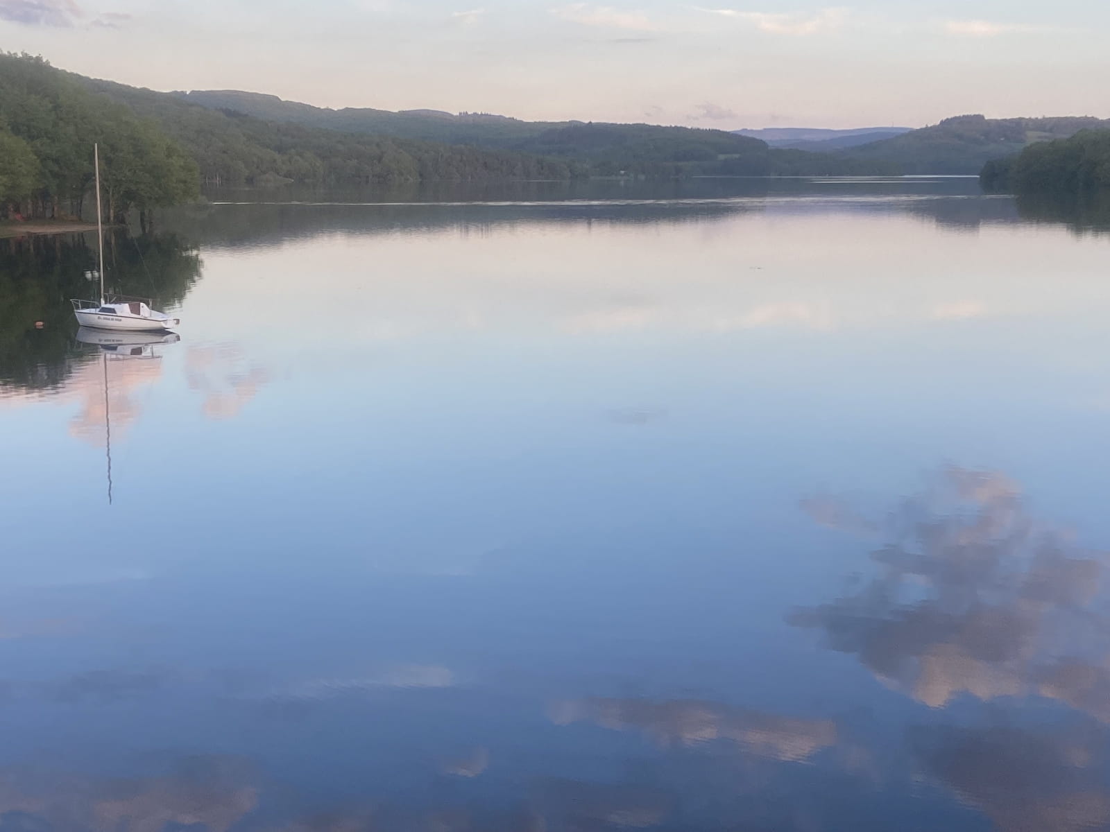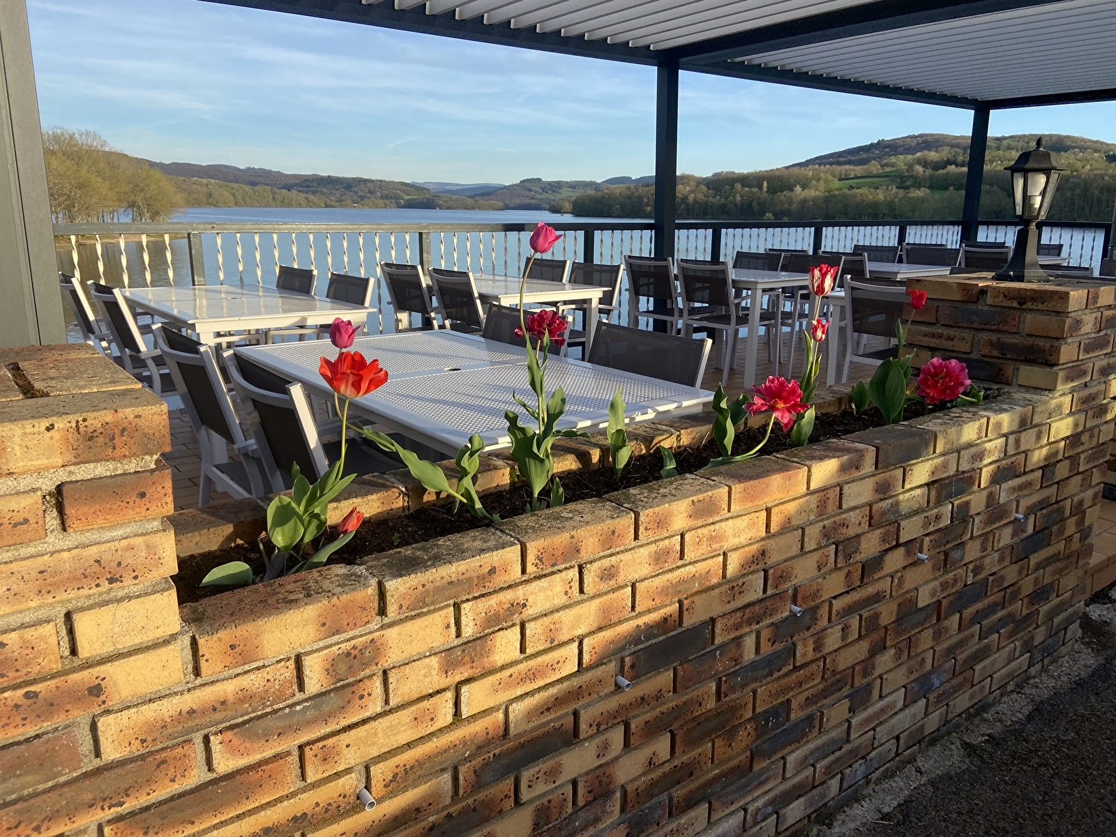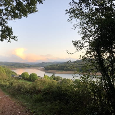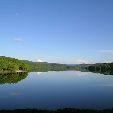 Direct view of the LAC de Pannecière from the terrace with pergola or dining room.