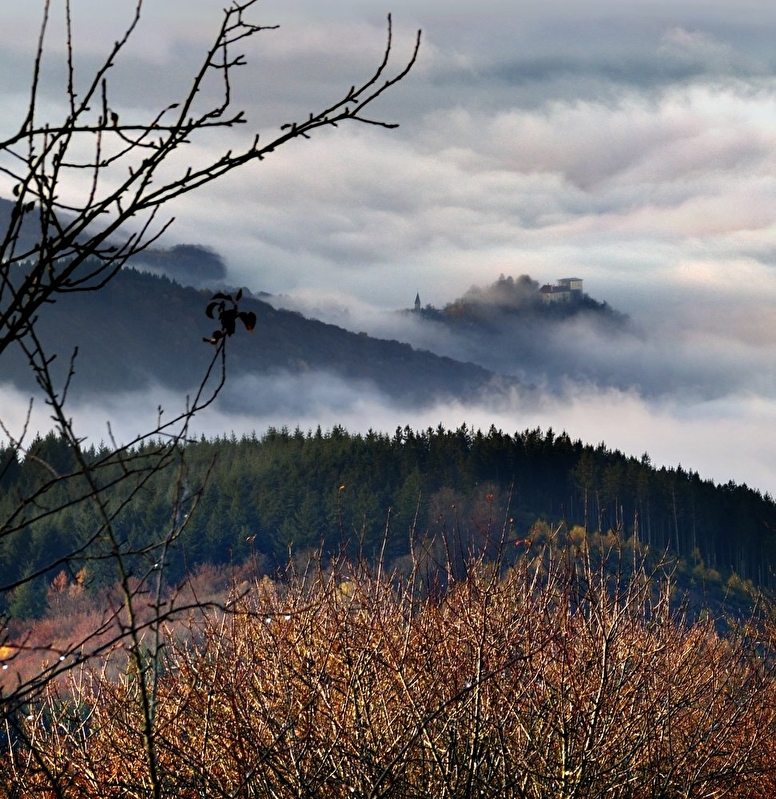 At Le Puits, turn left onto the D27 and descend towards the La Roche valley, bordered by meadows. Turn left again onto the D507, staying on it as you cross Petiton. Go around Le Beuvray via Montvernot, straight on at Le Crot des Hâtes and continue as far as Le Treux. View of the Château de La Roche, which dominates the valley at Larochemillay.