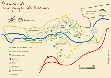 Neem de Route de Narvau vanuit het stadscentrum in de richting van Corbigny. 600 m na het verlaten van de stad kom je bij een parkeerplaats aan de rechterkant van de weg. Neem de kleine trap aan de rechterkant die naar beneden leidt naar de kloven van Narvau.