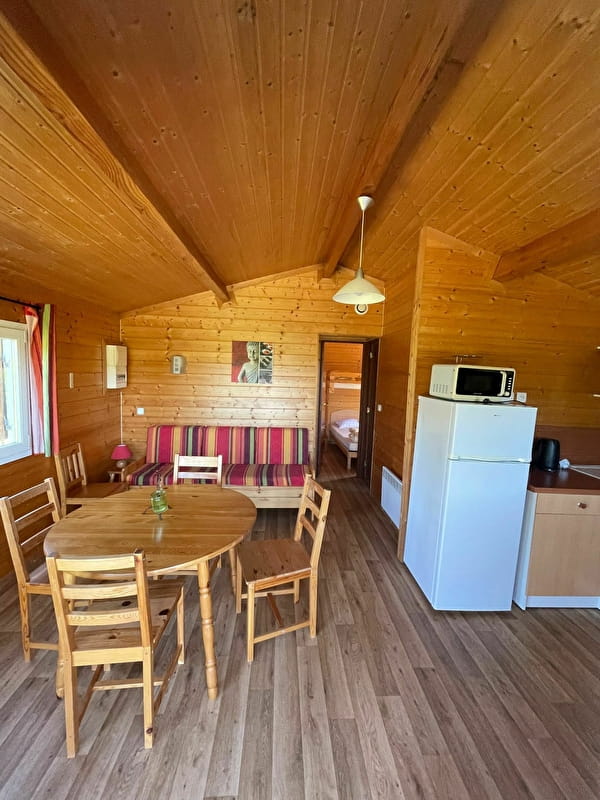Le chalet a une surface de 35 m² plus terrasse couverte van 6 m² et peut accueillir 5 personnes maximum.