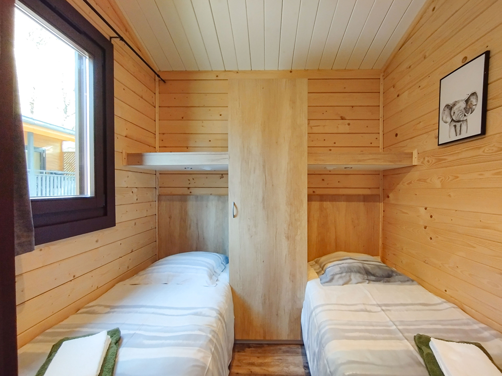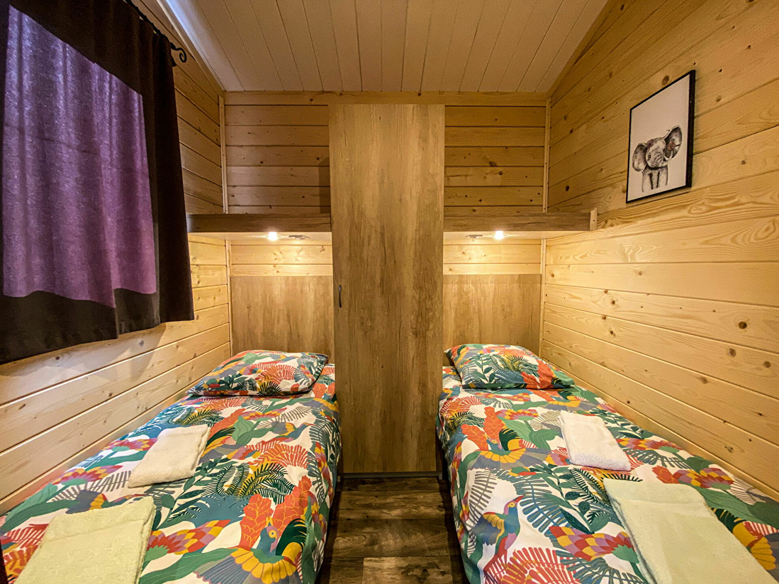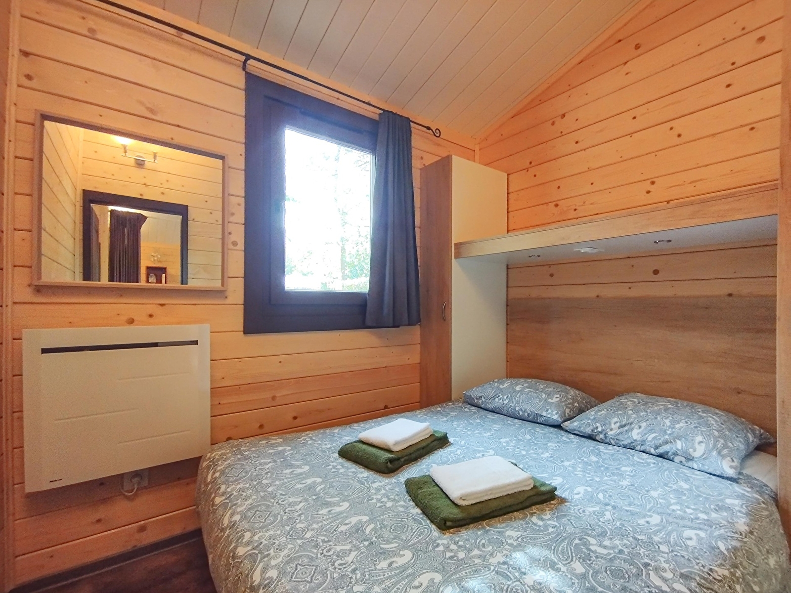 Idéal pour 4 personnes, il peut recevoir jusque 6 personnes : 1 chambre avec 1 lit double, 1 chambre avec 2 lits individuels, 1 salon en alcôve avec divan convertible. Salon de jardin sur la terrasse et table forestière dans le jardin.