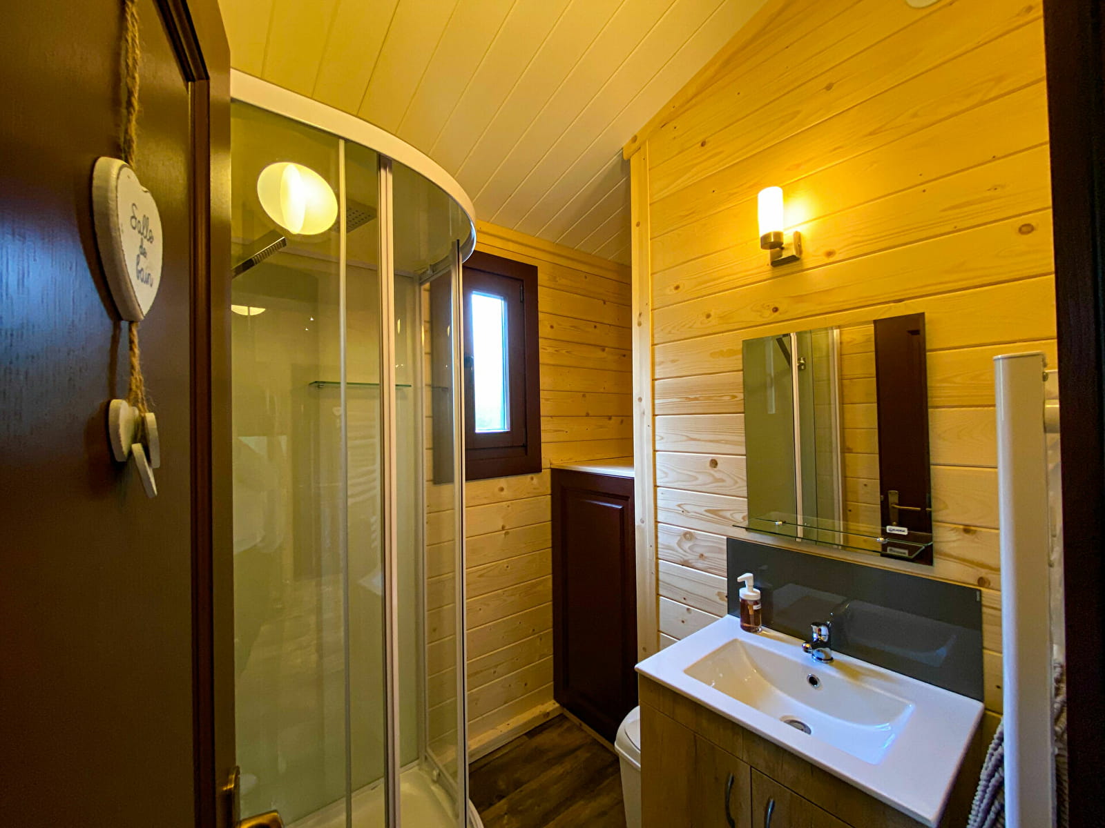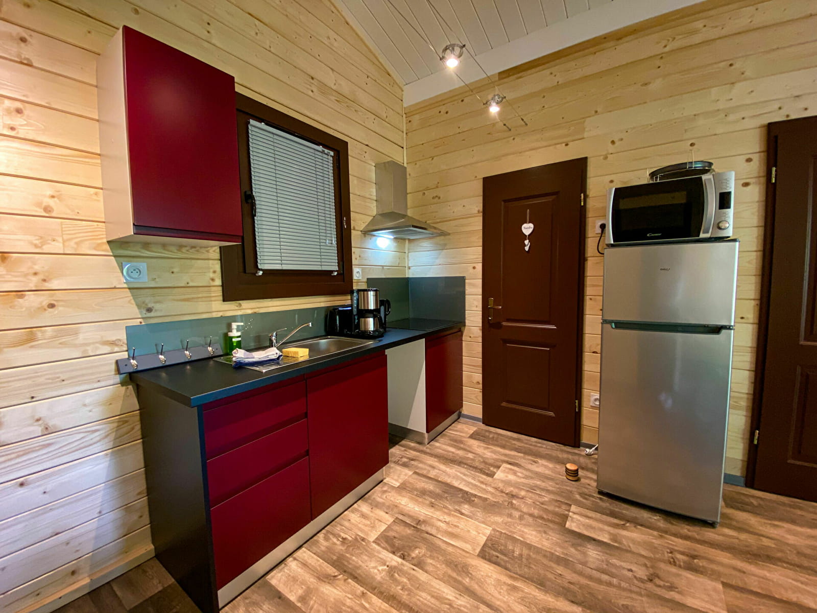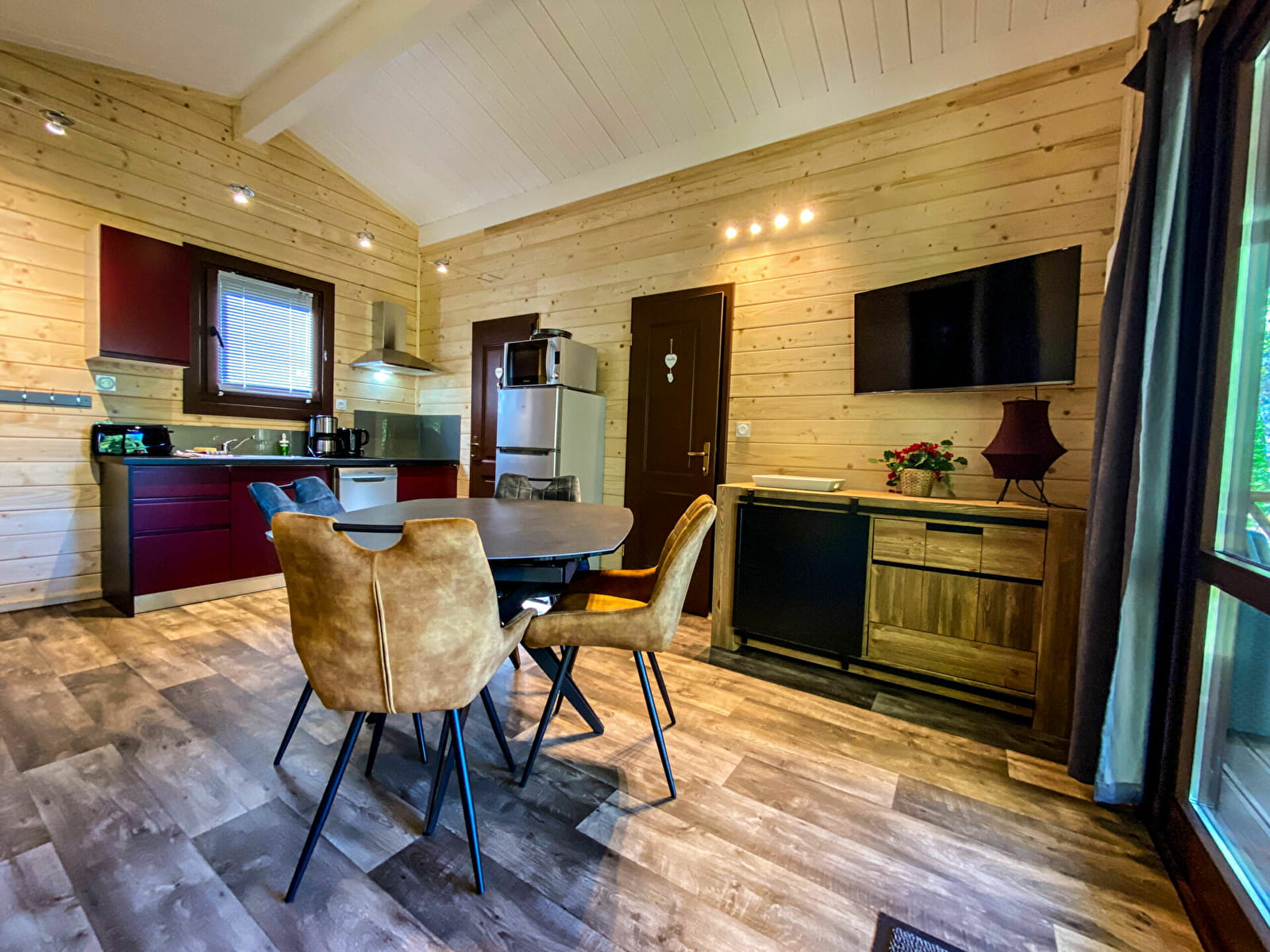 Chalet particulièrement soigné avec équipements haut de gamme. Cuisine équipée avec plaques de cuisson en vitrocéramique, lave-vaisselle et four-micro-onde combiné. Séjour avec mobilier design et contemporain. Très belle salle de douche en coin et WC séparés.