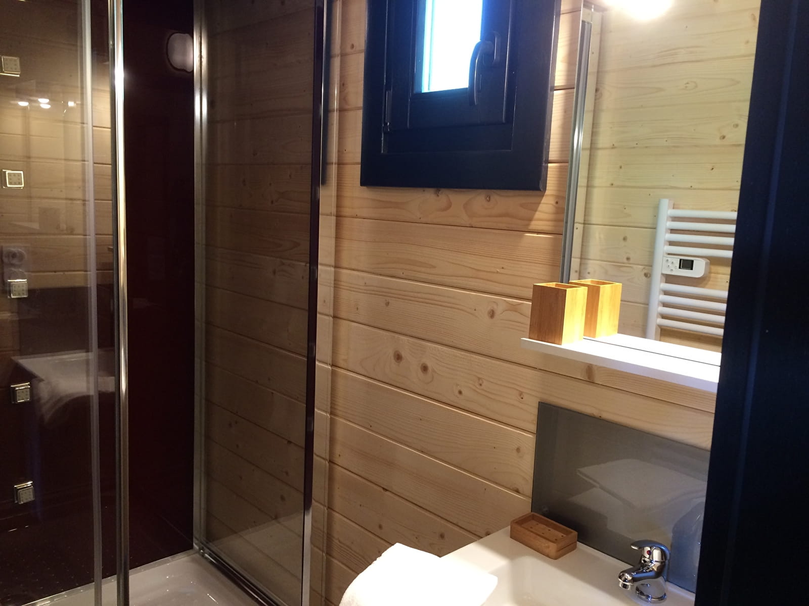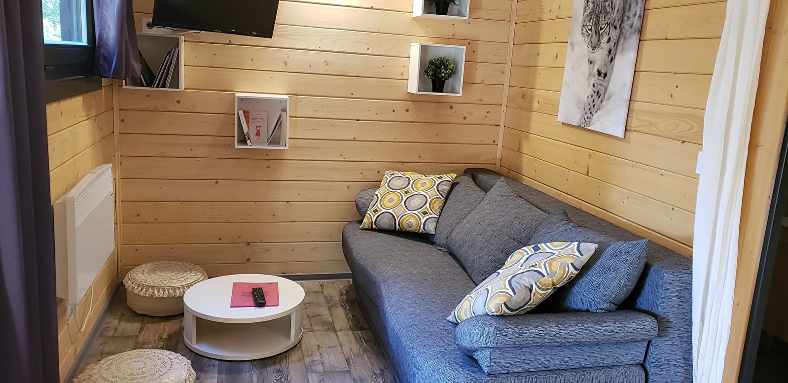 Résidence moderne et d'un confort supérieur, 100% bois et isolée "4 saisons". Une grande chambre suite avec vasque dans la chambre, dressing et accès direct sur la terrasse. Décorée sur le thème du Lynx du Morvan. Charmant séjour avec cuisine laquée, salle à manger et une alcôve avec grand divan (convertible en lit 2 personnes de qualité). Salle de bain avec grande douche rectangle balnéo. Le chalet profite d'une belle terrasse abritée équipée d'un salon de jardin. Jardin avec table forestière.