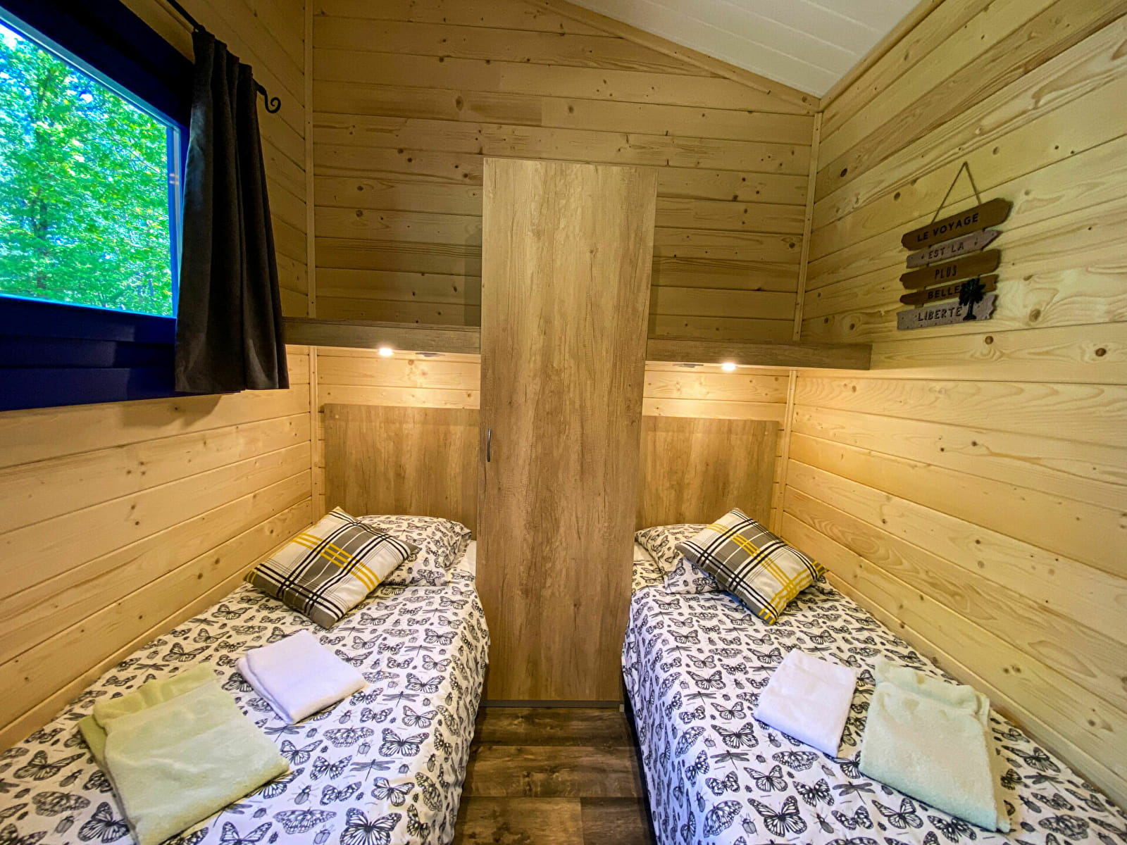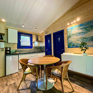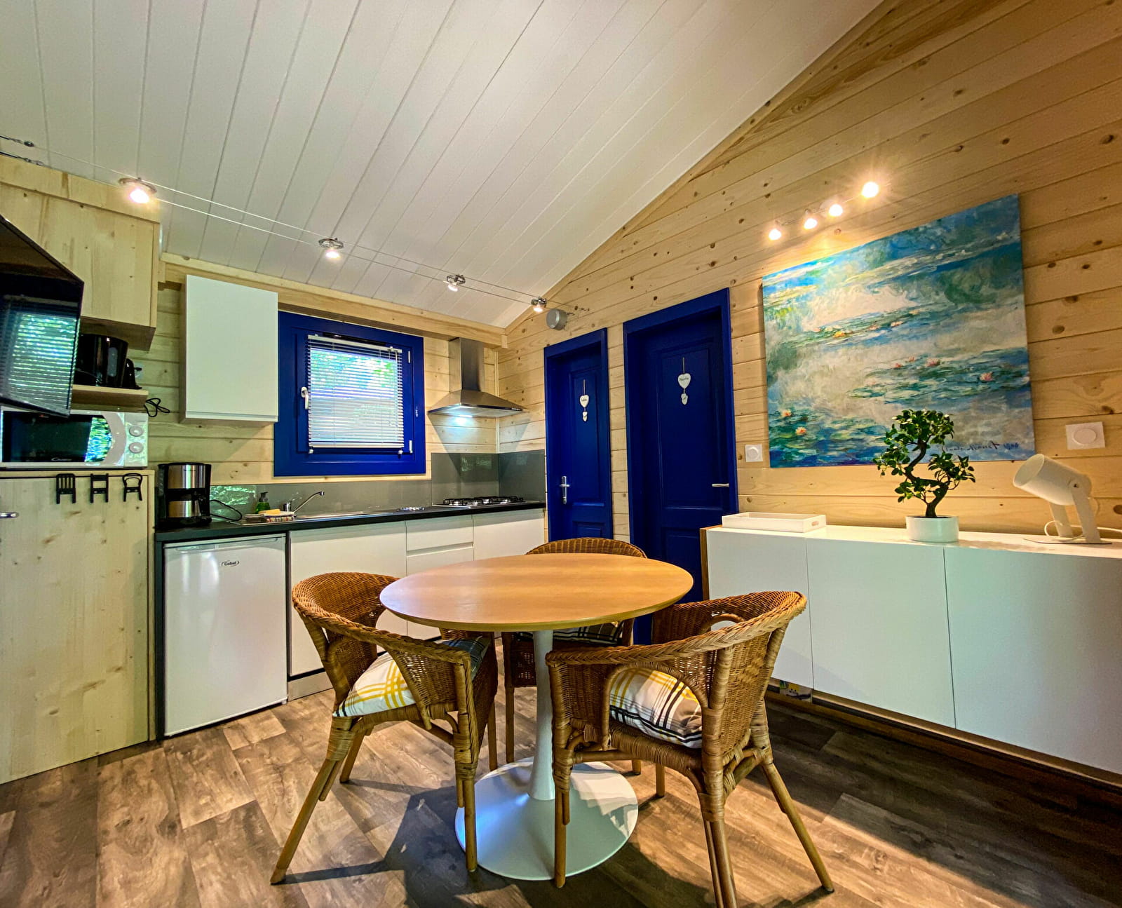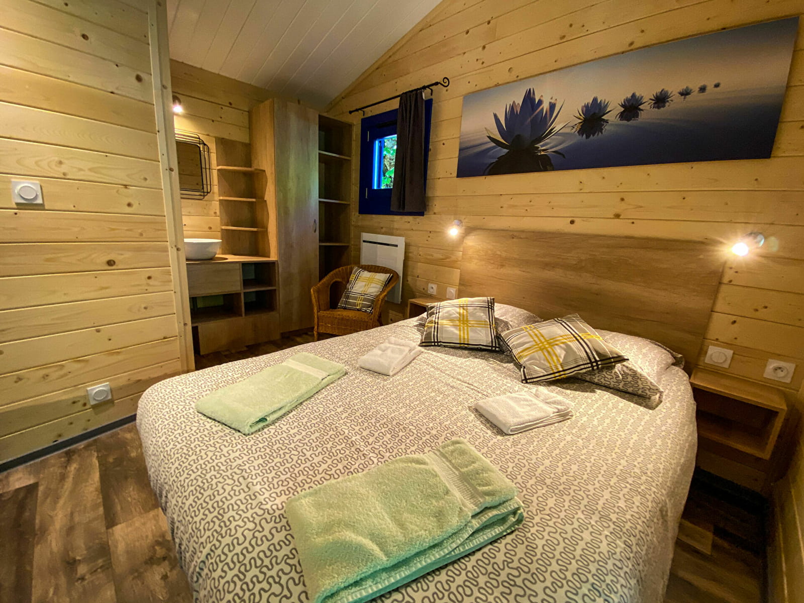 En front de lac, voici un superbe nouveau chalet 2 chambres (4 personnes) de plain-pied. Avec son séjour-salon original, vous dînez avec une vue sur le lac. Cuisine toute équipée, salle de bain et WC séparés. Terrasse garnie d’un salon de jardin pour l’apéritif. Table forestière pour les pique-nique dans le jardin privatif.