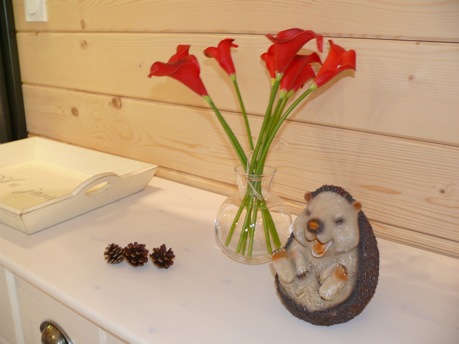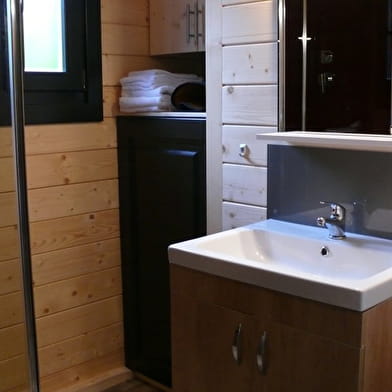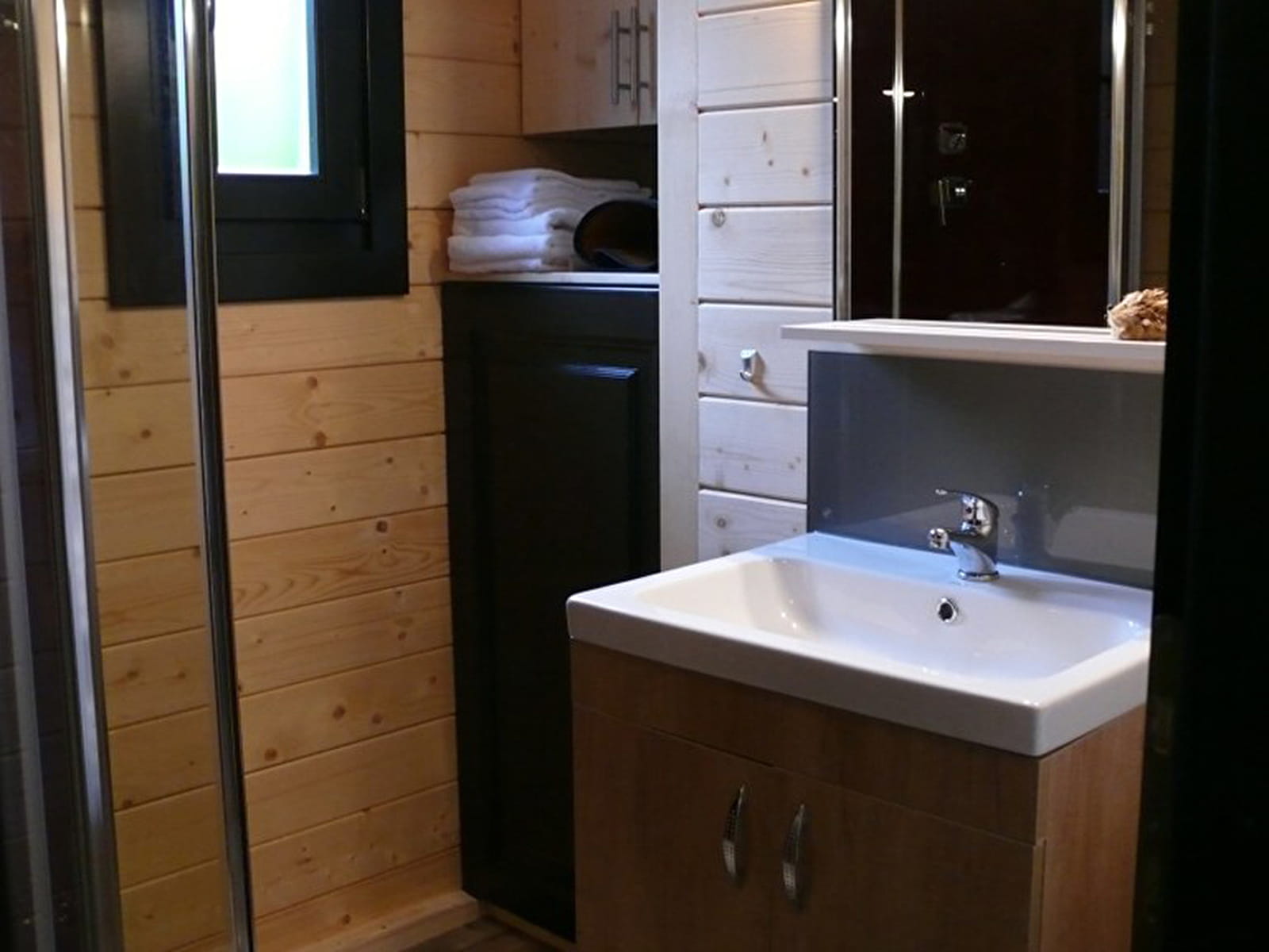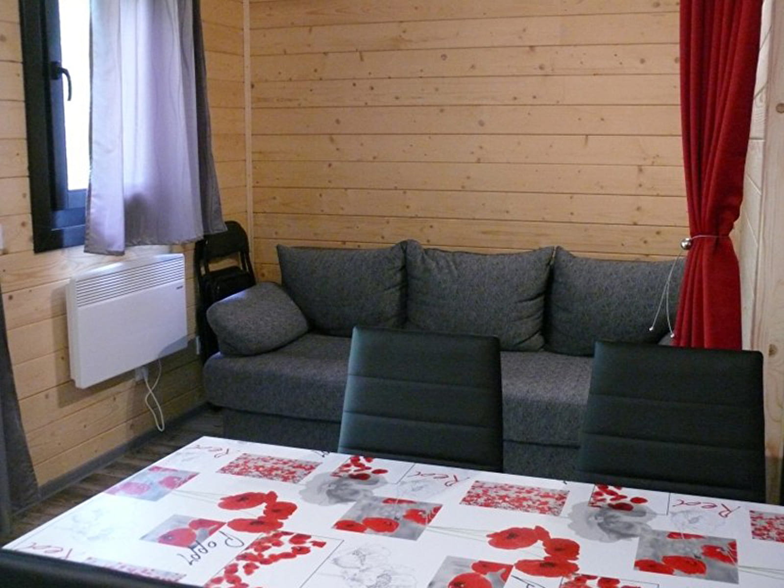 Depuis la terrasse en bois, s'ouvre le grand séjour avec sa superbe cuisine laquée en rouge. Avec ses deux chambres (1 lit double et 2 lits simples) et son salon en alcôve, la résidence accueille jusqu'à 6 personnes. Une magnifique salle de bain toute en bois avec belle douche et WC séparé.