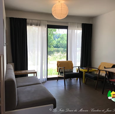 En pleine nature, sur un grand terrain avec étang pour l'initiation et le perfectionnement à la pêche à la mouche en réservoir, La Folie Douce du Morvan est un bâtiment d'architecte moderne en bois à 50 m de l’étang comportant des hébergements temporaires : appartements proposés à la location à la semaine en meublés de tourisme (classe 3) ou en chambres d'hôtes avec table d'hôte occasionnelle.
