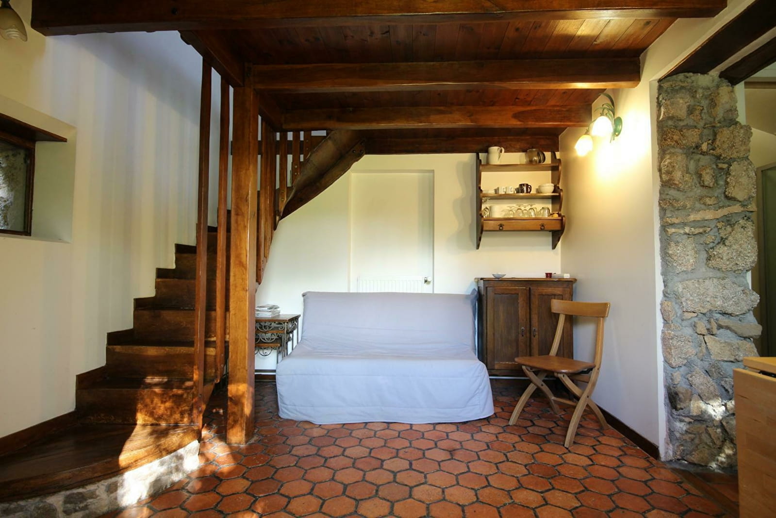 Au coeur du Parc Naturel Régional du Morvan, maison indépendante en pleine nature, partagée en 3 gîtes, avec propriétaire à proximité. Accès par chemin privé, route à 300 m. Séjour, cuisine, salle d'eau, wc. A l'étage 1 chambre en mezzanine avec 1 lit 2 personnes mansardée. Buanderie avec lave-linge commun aux 3 gîtes, chauffage central compris. Ping-pong. Piscine intérieure chauffée toute l'année avec accès indépendant et réglementé (réservation de plages horaires) chez les propriétaires. A proximité des lacs (Les Settons, Pannecière), berceau de la randonnée. Château-Chinon à 3 km avec ses musées du Costume et du Septennat. Le gîte n'est pas configuré pour recevoir des enfants, juste 2 adultes.