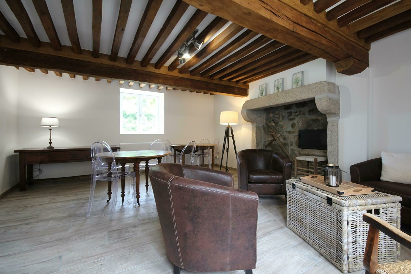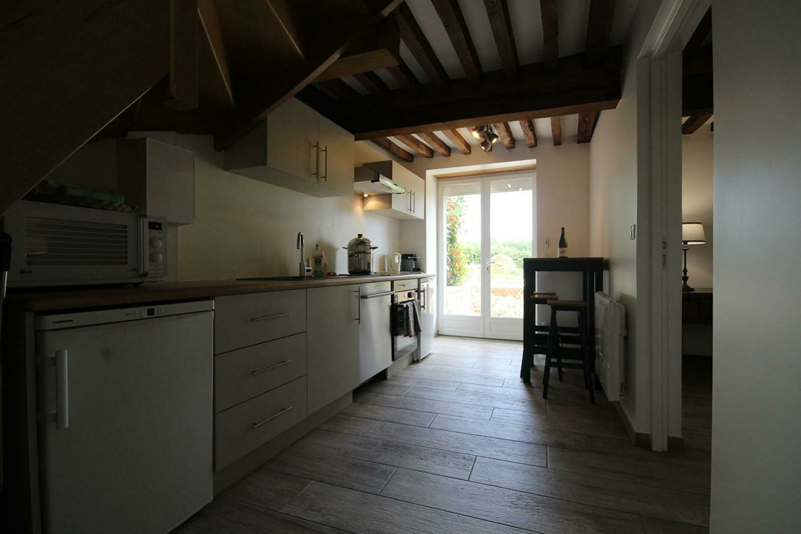 A l'intérieur, une ambiance chaleureuse et conviviale : une cuisine intégrée et équipée avec accès direct à la terrasse, salon cosy; à l'étage, 2 chambres ayant chacune des lits grande dimension jumelables à la demande (80x200); une salle d'eau avec douche et WC. Le lave-linge et sèche-linge se trouvent dans la buanderie annexe
