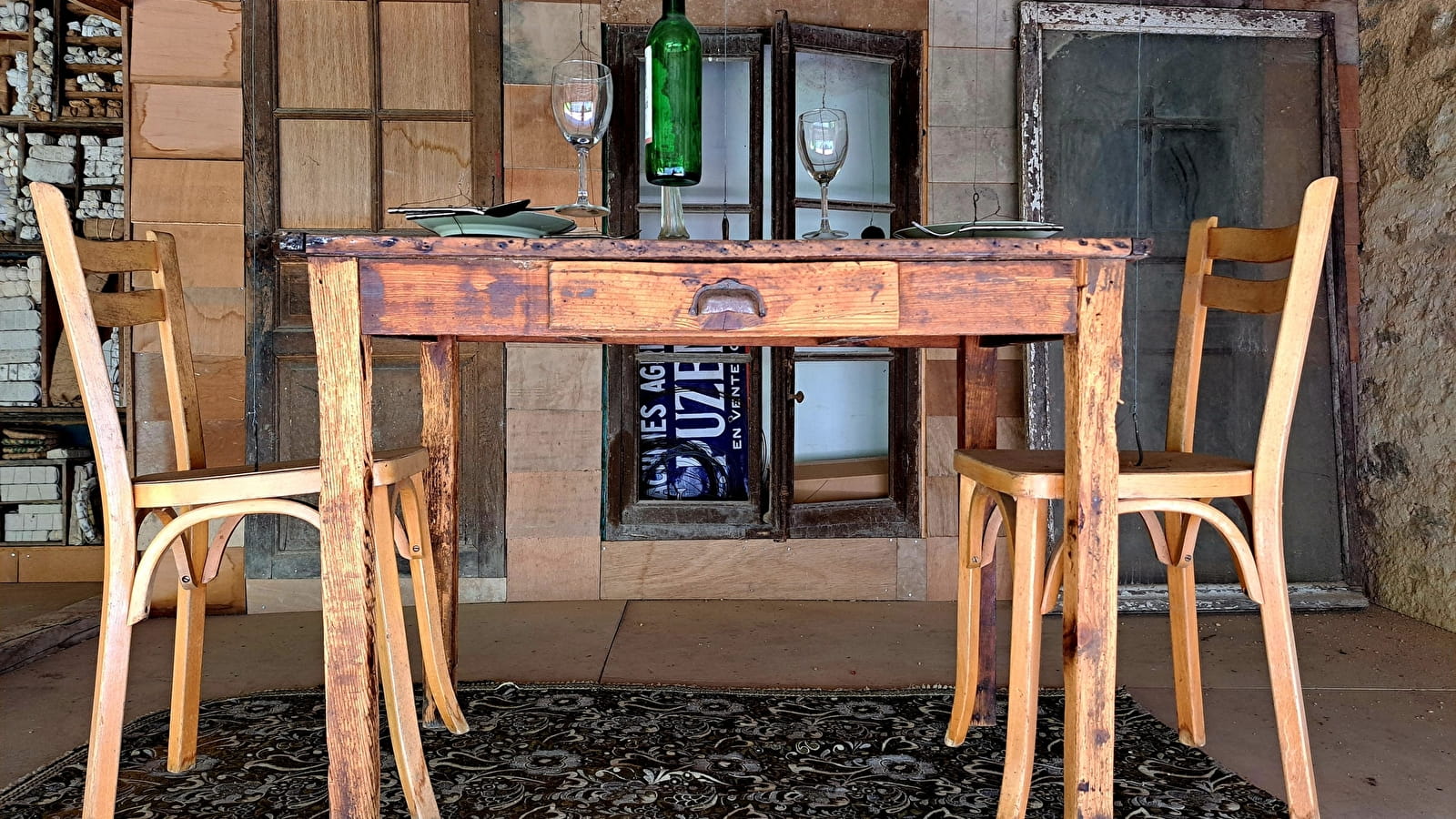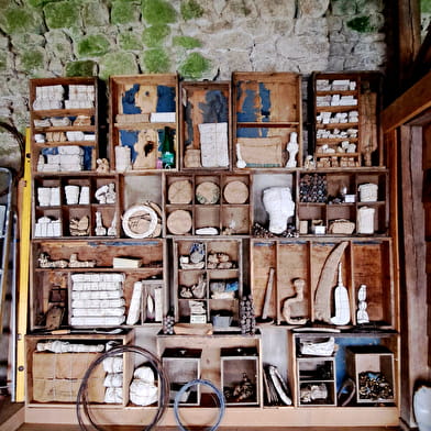 Au cœur d'un collectif d'artistes, Henk Slomp, sculpteur, a choisi de déployer une parcelle de son univers empreint de nuances ocres, brunes et rouges. Selon les espaces où il se trouve, des accumulations de mystérieux paquets, vestiges du passé, tapissent un mur, à proximité d'un romantique tête-à-tête : une table, des chaises et des couverts dressés à la française, tous en lévitation, évoquant un temps révolu. Et si on lève les yeux, des centaines de sachets cousus à la main, renfermant les rêves des visiteurs passés, nous fixent tel un vertige enserrant des secrets presque inatteignables.