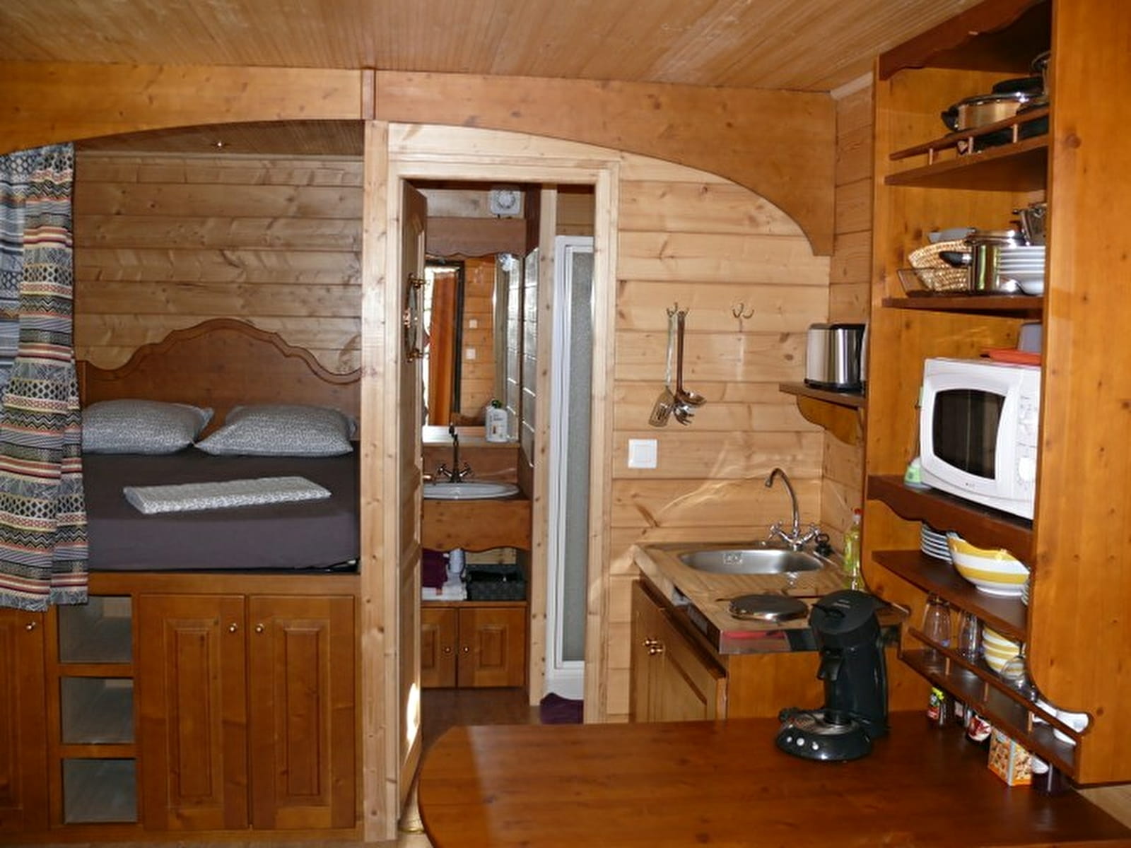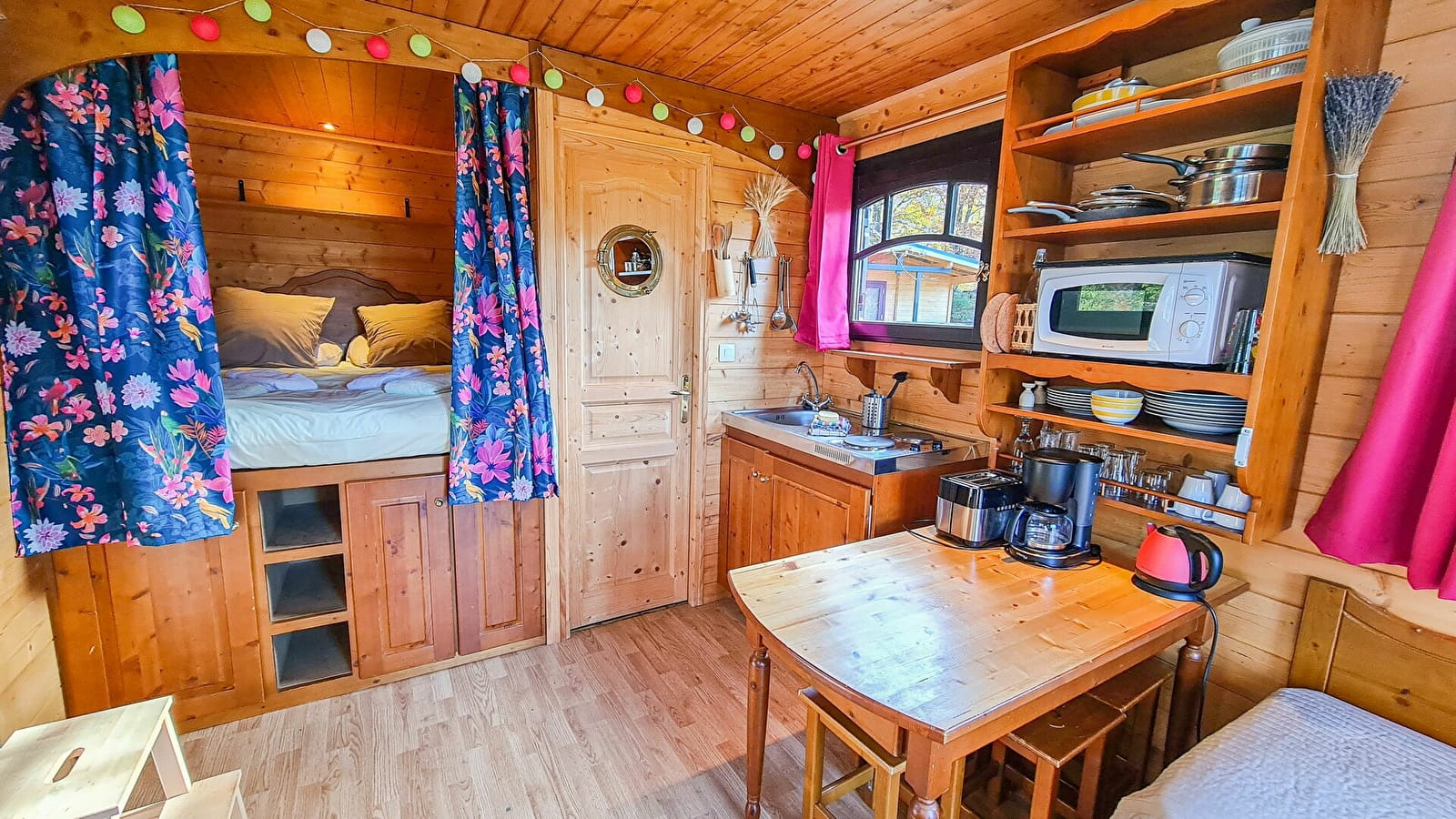 Charmante roulotte avec vue directe sur le lac, super confortable elle est tout équipée et peut accueillir jusqu'à 4 personnes.