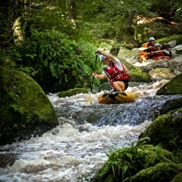 Equipé d'un flotteur + combinaison renforcée + palmes. Descente de la rivière en nageant. Activité accessible à partir de 14 ans (être un excellent nageur et avoir une excellente condition physique).