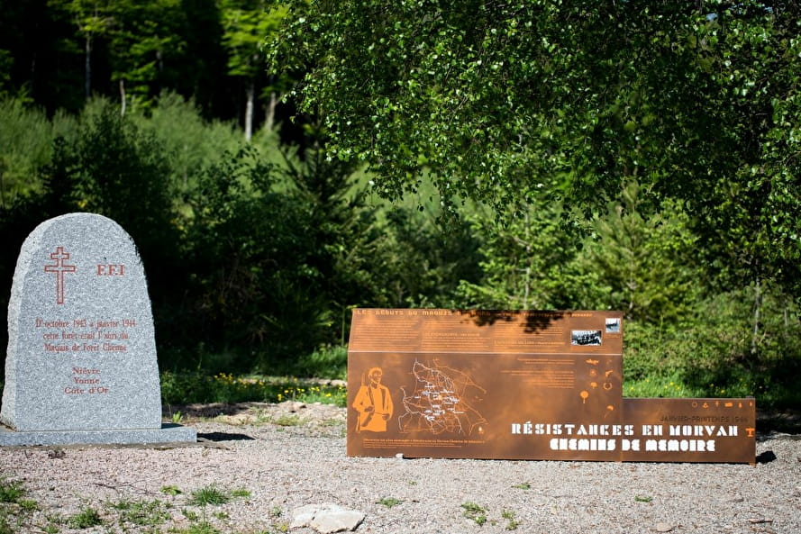 Vingt-huit sites mémoriels de la Seconde Guerre mondiale ont été aménagés et bénéficient de l’appellation «Résistances en Morvan - Chemins de Mémoire». Ils ont été aménagés afin de poursuivre cette oeuvre de mémoire par une identité bien reconnaissable. Mis en valeur par une scénographie et la plantation de végétaux, ces aménagements proposent une approche pédagogique et sensible de cette histoire, par thématiques.